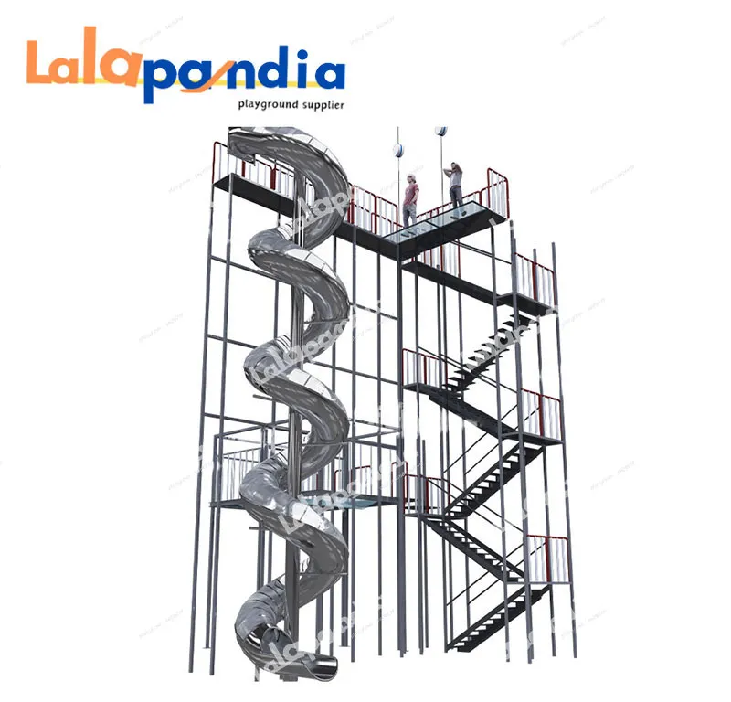 Lalapandia's big costomized stainless steel slide, ideal for big slide playgrounds and large playgrounds, offers diverse designs like tower, wavy, and tunnel slides, featuring safety grab bar entrance and rolled exit, customizable specs (sizes, colors, layouts) to match various venues.