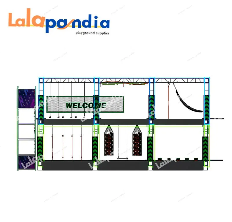 Recreation elements: rope climbing, swing bridge, balance platform, Ninja Raceway
