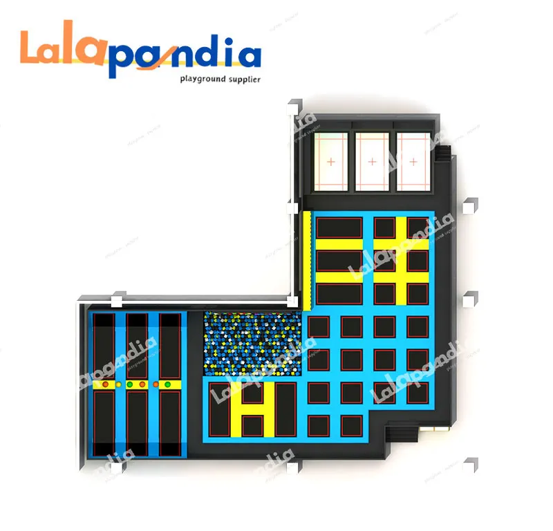 Capture the entire family market. Our designs expertly segment the park into dedicated, age-appropriate zones. Create a safe "Tiny Hoppers" area for toddlers, high-energy courts for teens, and challenging ninja courses for adults, all under one roof.