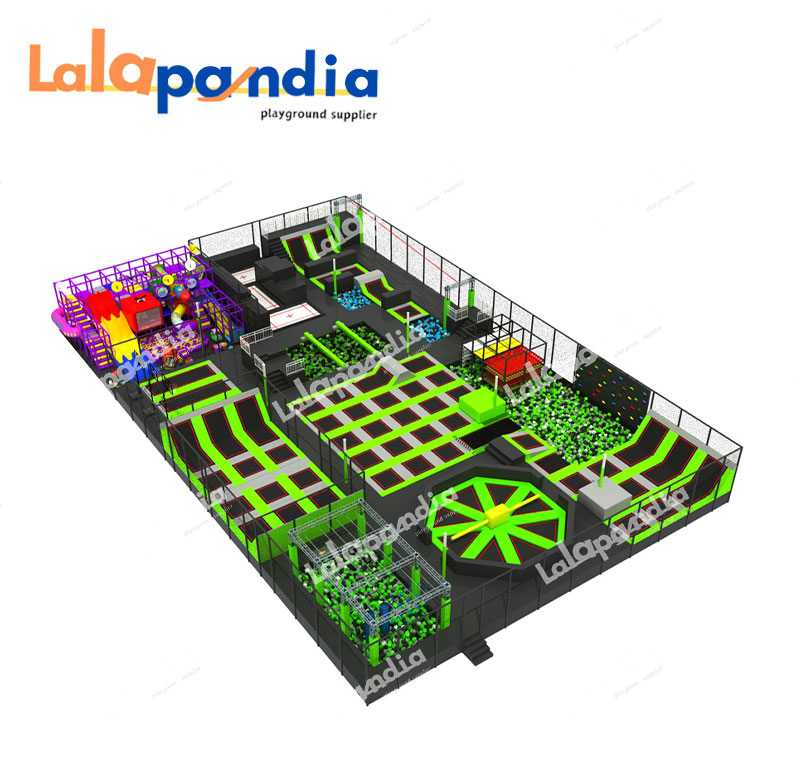 Recreation elements: rope net, tunnel, trampoline, carousel, slide, ball pool, rocking horse, Rotating slide