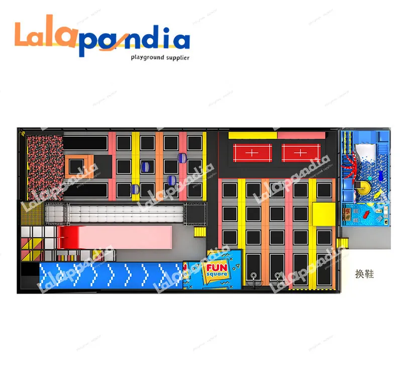 LalaPandia commercial children’s indoor trampoline park integrates colorful trampoline courts, safe foam pits, and diverse interactive play zones, creating a vibrant, multi - functional space for kids to bounce, ideal for parks, malls, and theme venues.