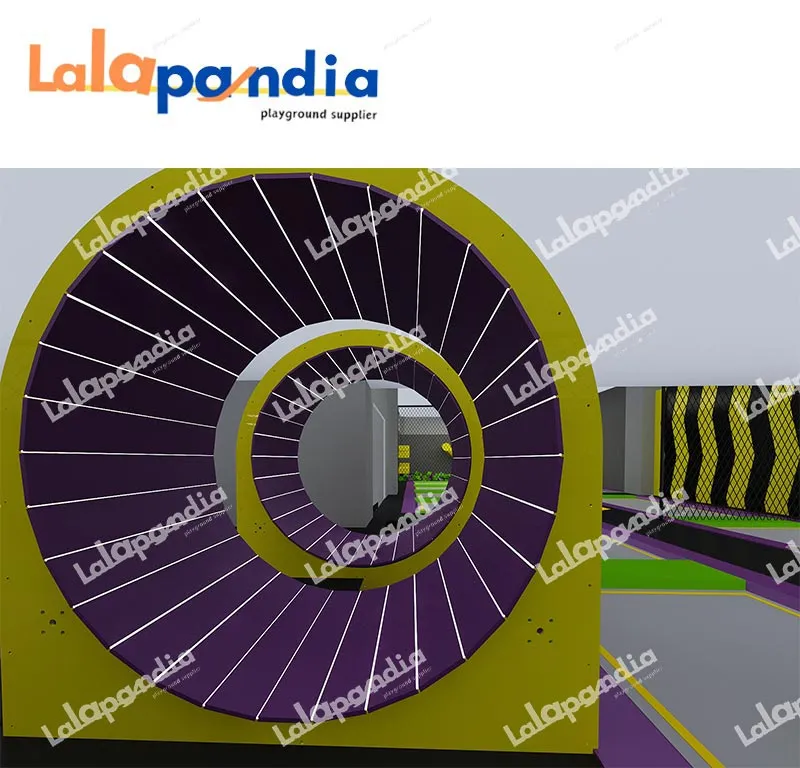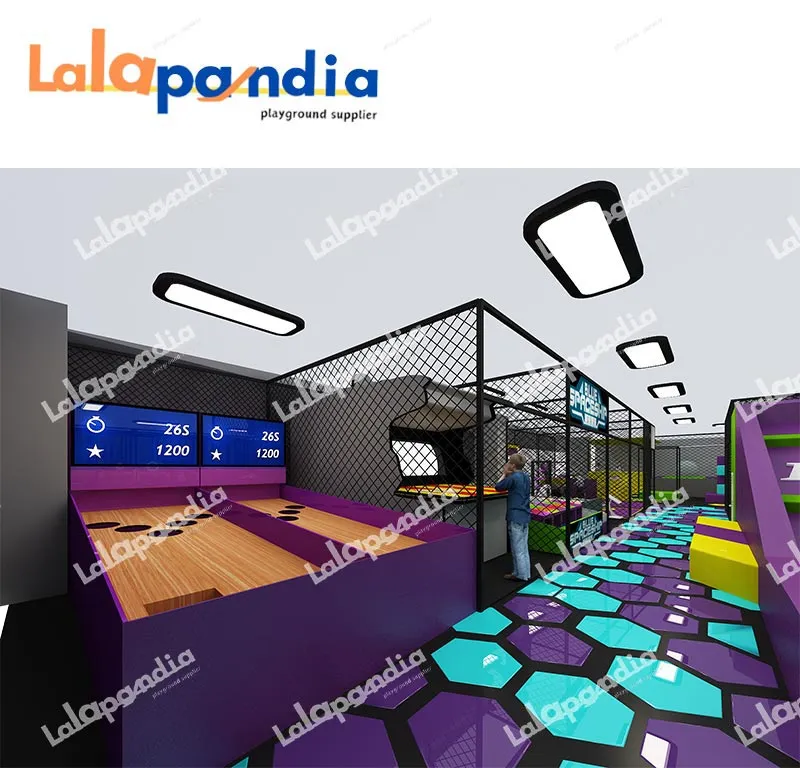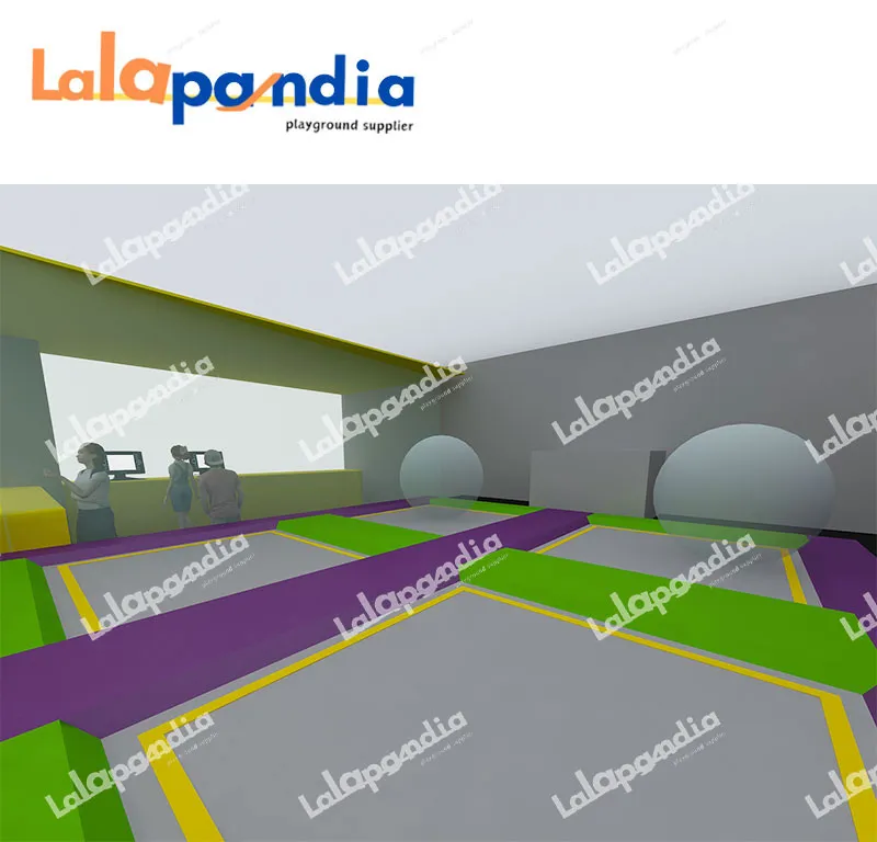 Customizable children's indoor trampoline park by Lalapandia, a versatile trampoline playground with diverse zones like climbing walls, ball pits, and sports areas, customizable capacities for parks, malls, or theme venues.