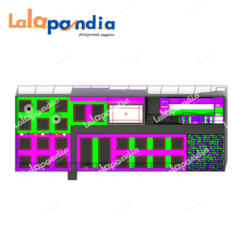 Recreation elements: rope net, tunnel, trampoline, carousel, slide, ball pool, rocking horse, Rotating slide