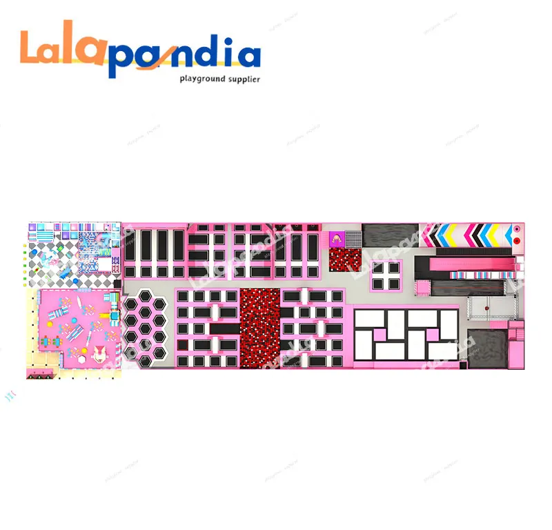 Recreation elements: rope net, tunnel, trampoline, carousel, slide, ball pool, rocking horse, Rotating slide