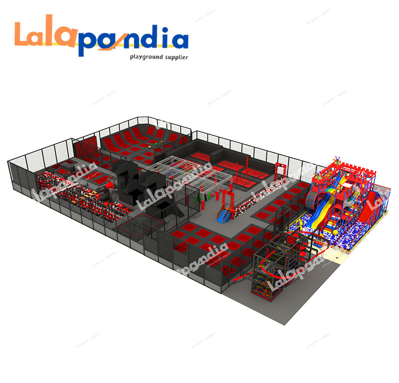 Recreation elements: rope net, tunnel, trampoline, carousel, slide, ball pool, rocking horse, Rotating slide
