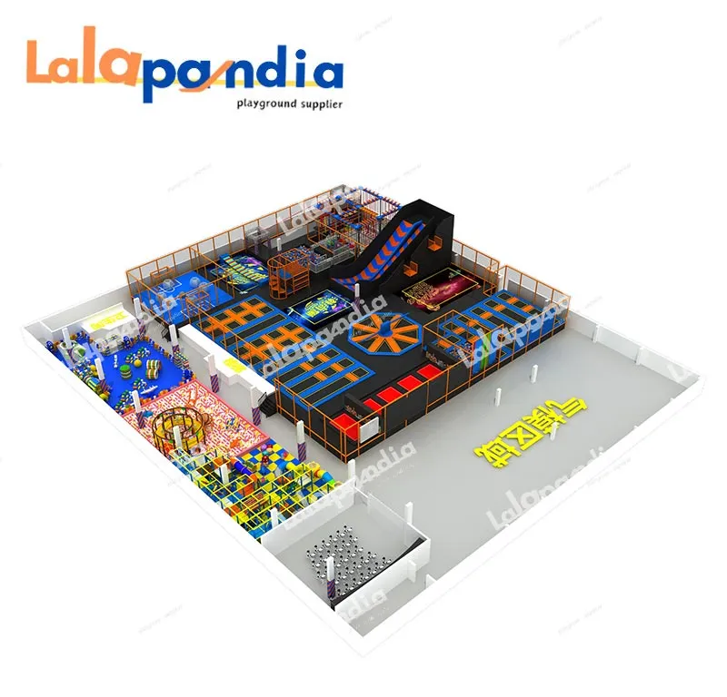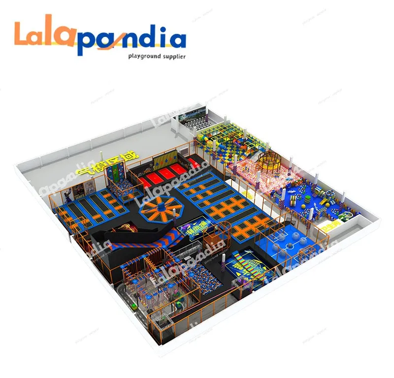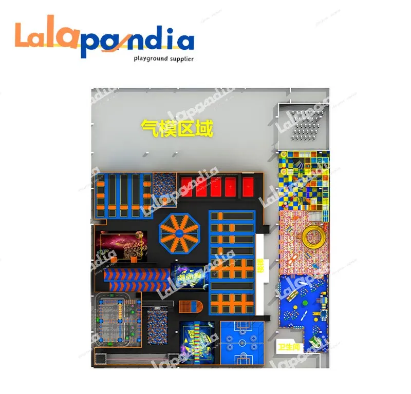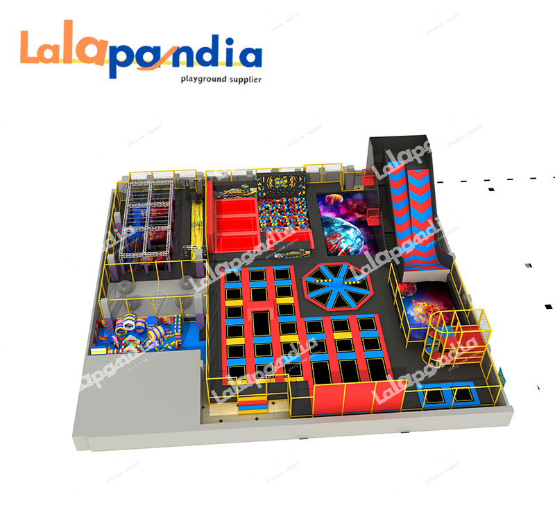 Recreation elements: rope net, tunnel, trampoline, carousel, slide, ball pool, rocking horse, Rotating slide