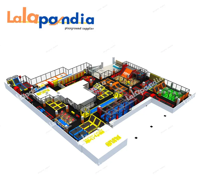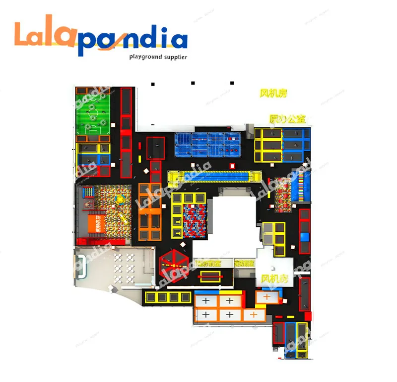 Recreation elements: rope net, tunnel, trampoline, carousel, slide, ball pool, rocking horse, Rotating slide