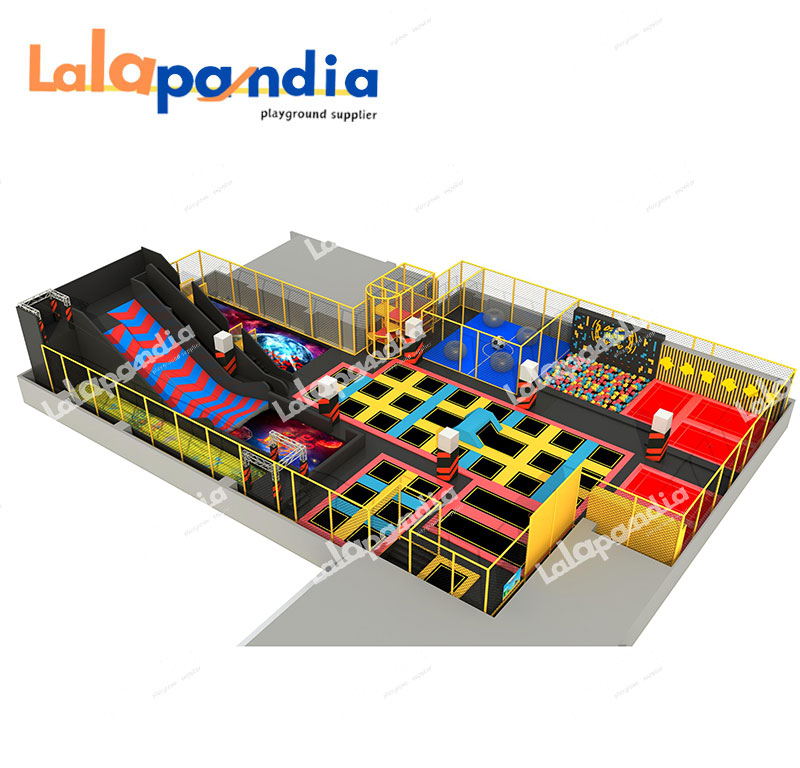 Recreation elements: rope net, tunnel, trampoline, carousel, slide, ball pool, rocking horse, Rotating slide