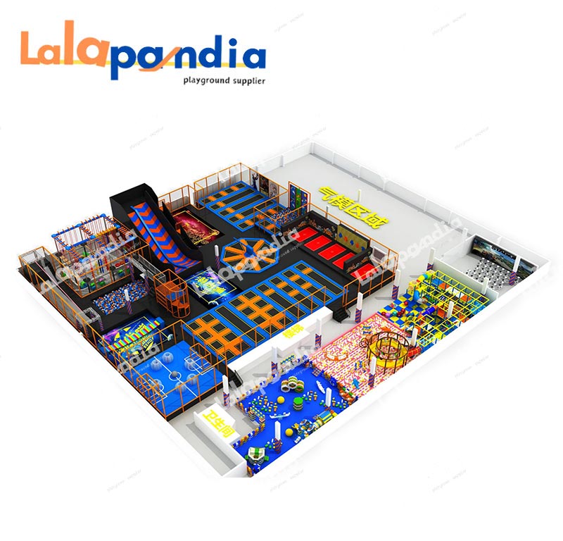 Recreation elements: rope net, tunnel, trampoline, carousel, slide, ball pool, rocking horse, Rotating slide