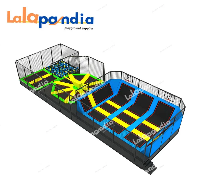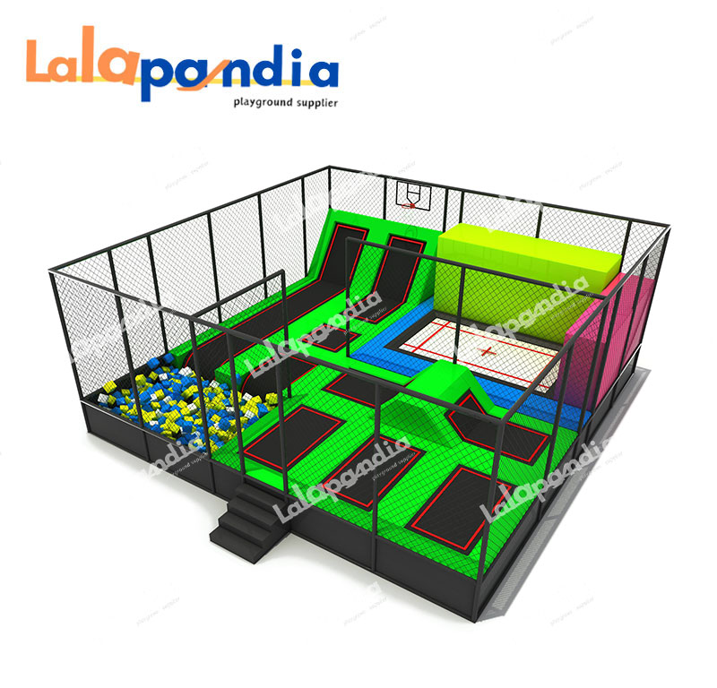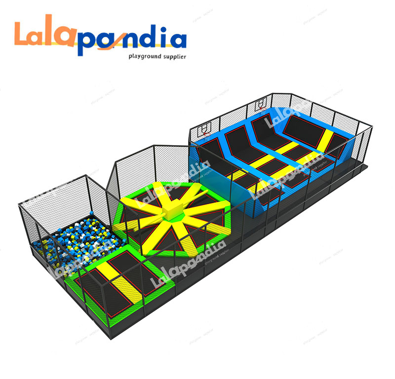 Recreation elements: rope net, tunnel, trampoline, carousel, slide, ball pool, rocking horse, Rotating slide