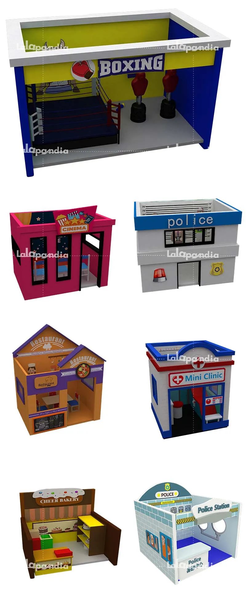 Themed Customization: Customize sizes, colors, and themes (e.g., bakery, bank, fire station) to align with your space.