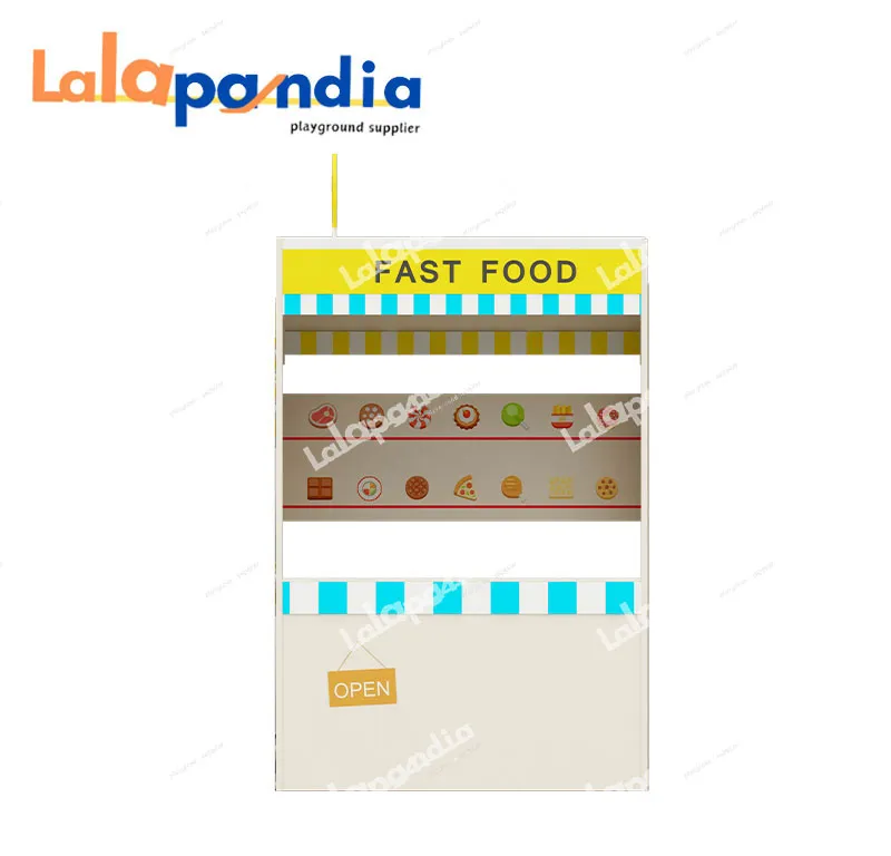 The Fast Food Truck Pretend Play House is open for delightful pretend play, boasting an interactive structure with a front service window for "taking orders" and colorful food illustrations to inspire kids' creativity, ideal for immersive role-play adventures during playtime or parent-child interactions.