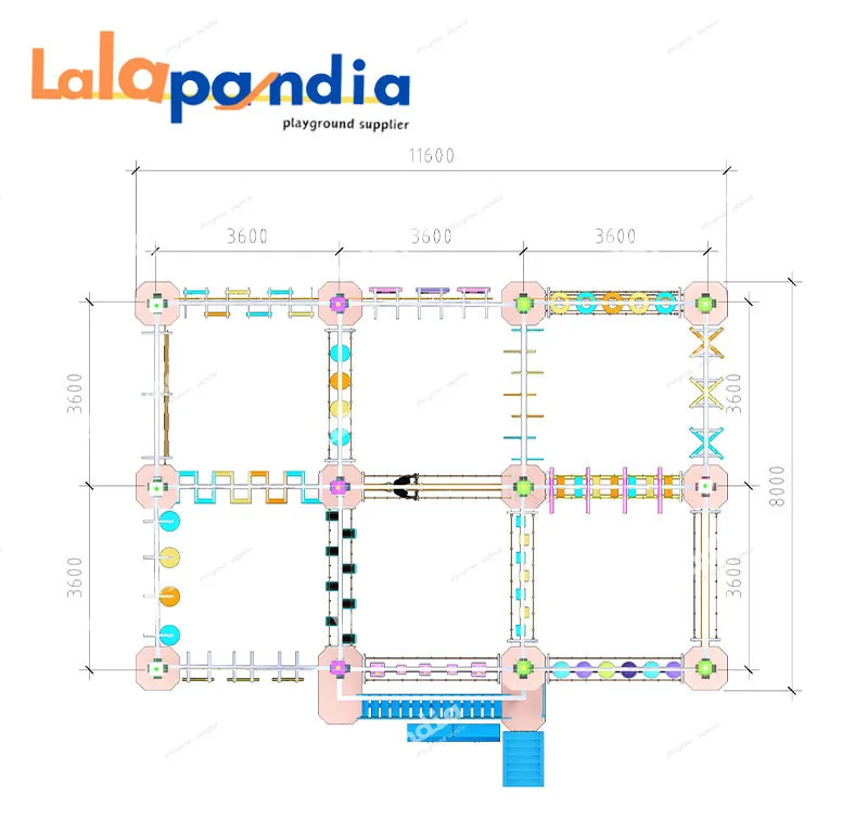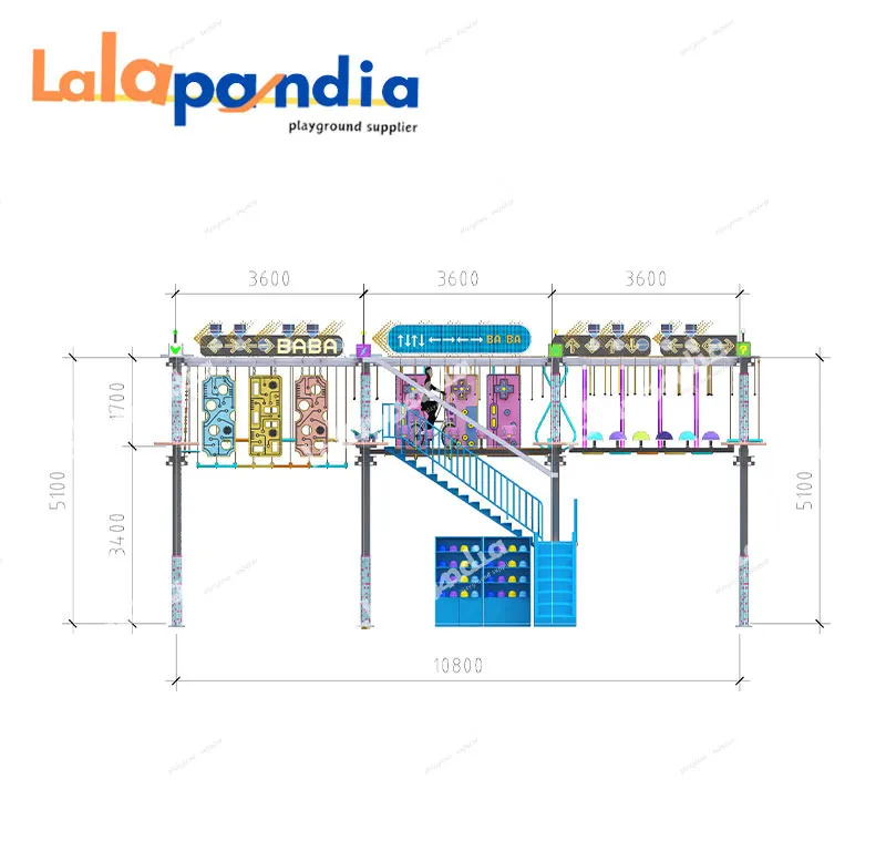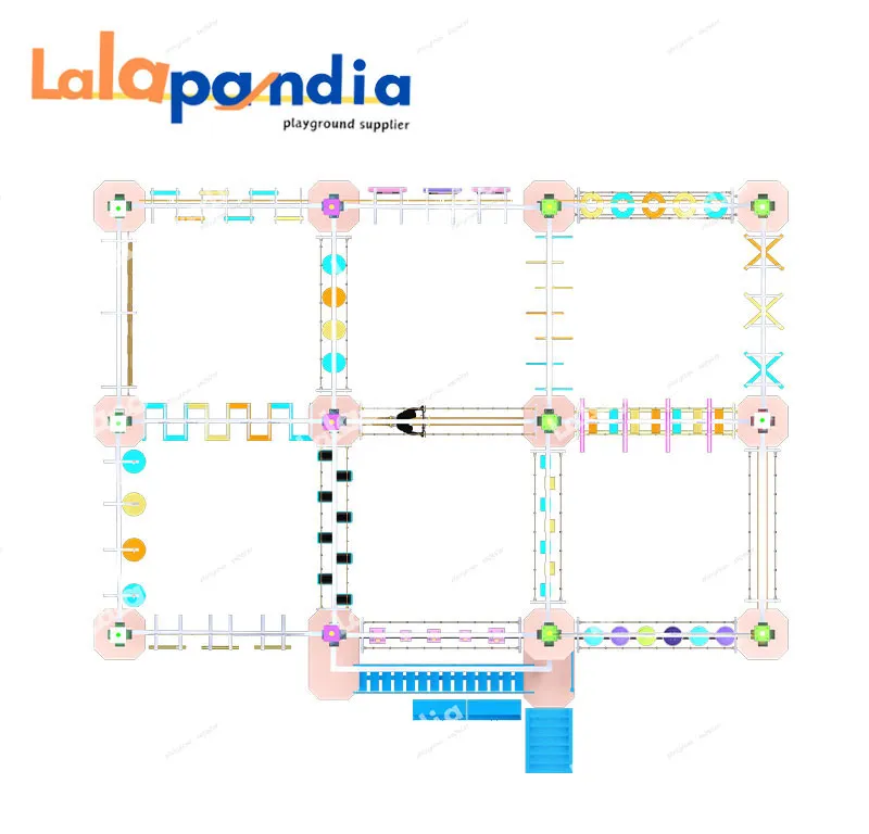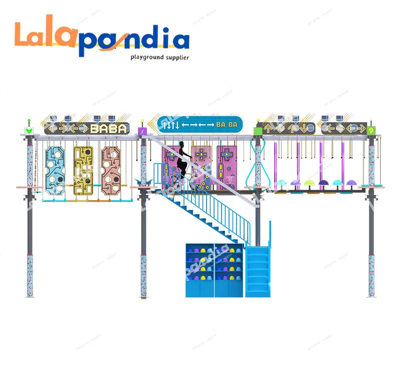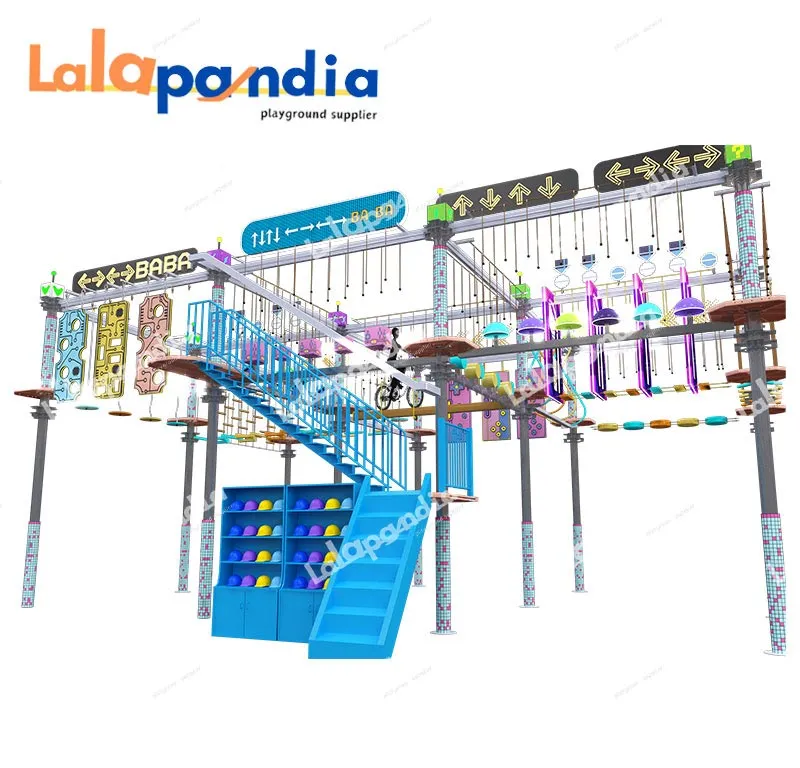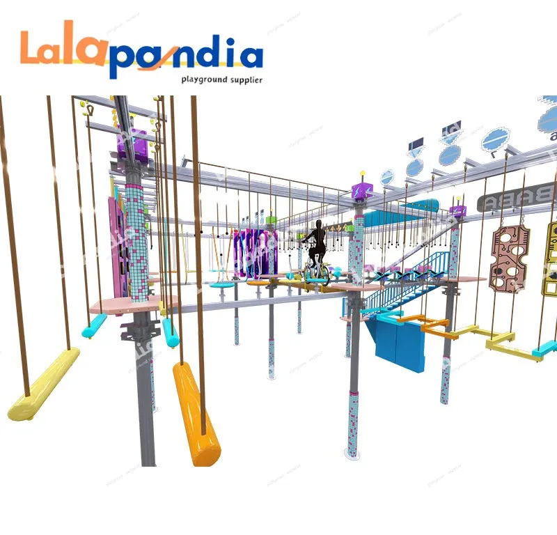 Lalalandia's children's indoor rope course, an exciting adventure indoor ropes course with indoor high ropes, features diverse challenges like swinging bridges and climbing paths, sparking kids' courage and exploration in a safe, thrilling space.