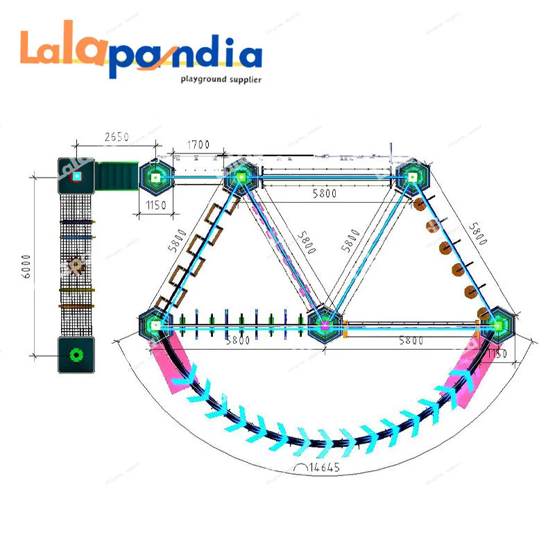 Recreation elements: Climbing Net, balance platform, Rings, Obstacle climbing